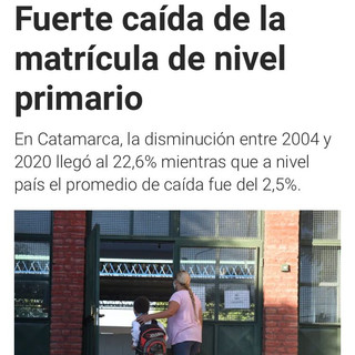 📍En Catamarca, la disminución de la matrícula en nivel primario entre 2004 y 2020 llegó al 22,6% mientras que a nivel país el promedio de caída fue del 2,5%.