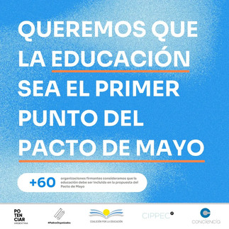 Porque consideramos a la EDUCACIÓN como piedra fundacional de todo pacto que pretenda asegurar el bienestar y desarrollo de la nación, junto a ➕ de 60 organizaciones pedimos que ocupe el primer lugar en el #PactoDeMayo
