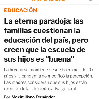 📍“Desde hace más de 20 años las encuestas vienen mostrando un hiato entre la percepción de los padres sobre la educación que reciben sus hijos y la calidad de la educación nacional. No tenemos explicaciones claras respecto de por qué y cómo se construye esta percepción paradojal. A mi entender, el desafío es avanzar en una indagación sobre qué valoran los padres de la educación de sus hijos”, afirmó Guillermina Tiramonti, investigadora de FLACSO.